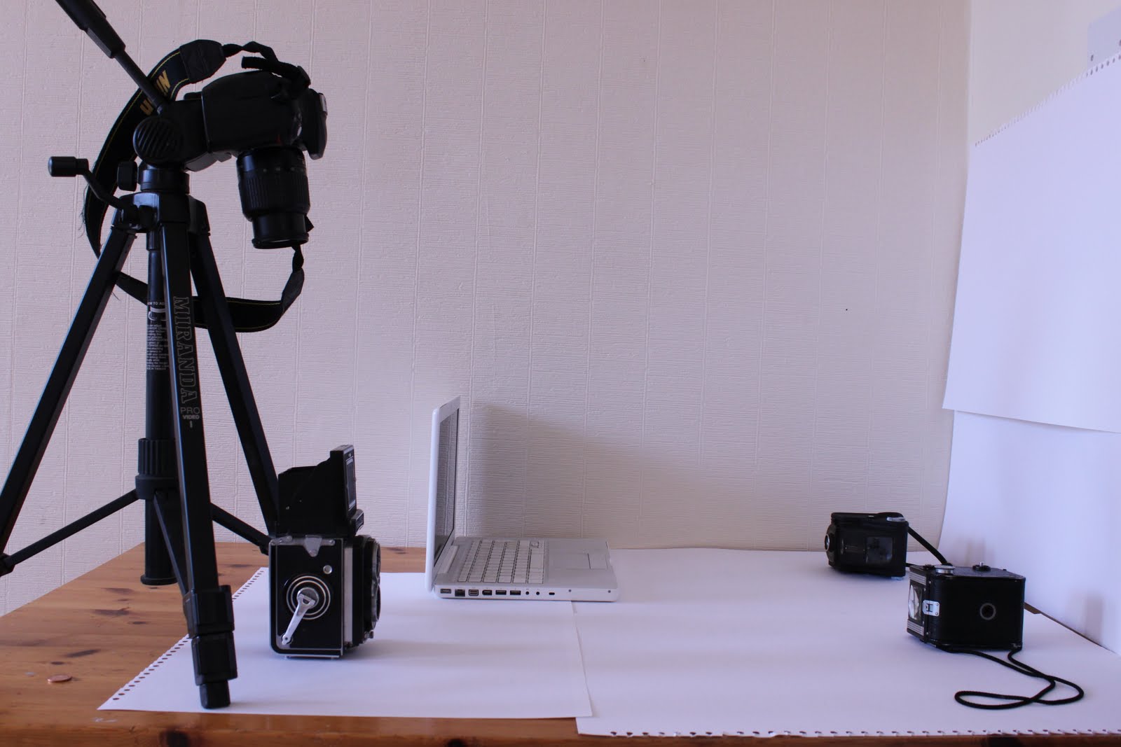 I am continuing my 'through the viewfinder' project as part of my Self Directed Study. I was looking at original photographic processes and the development of technology from traditional cameras to digital cameras. I have decided to photograph my subject through as many different lenses to show this transition. This experiment shows a film being played from a laptop through the lenses of four cameras. It needs a lot of development but Iintend to use a higher quality digital camera and zoom lens and photograph a motion piece through different lenses.